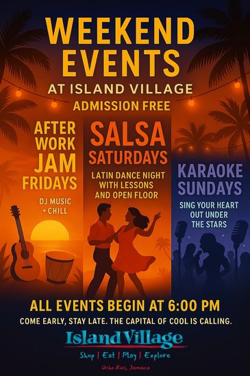 Get ready to turn your weekends into unforgettable memories at Island Village Jamaica! Our admission-free weekly events offer something for everyone—whether you’re winding down, heating up the dance floor, or stepping up to the mic.